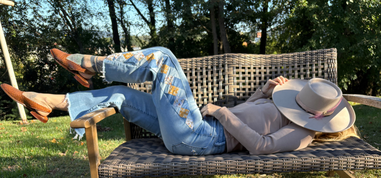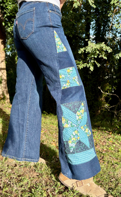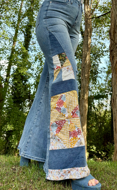 Each pair of jeans is pieced, quilted, and finished to reflect your personality and taste. You choose your color and design preferences, and I customize your jeans to ensure they are truly one-of-a-kind.